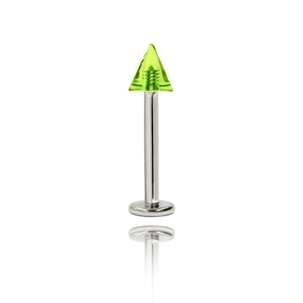 Labret ze stali chirurgicznej 316L z akrylowym stożkiem w kolorze jaskrawozielonym.