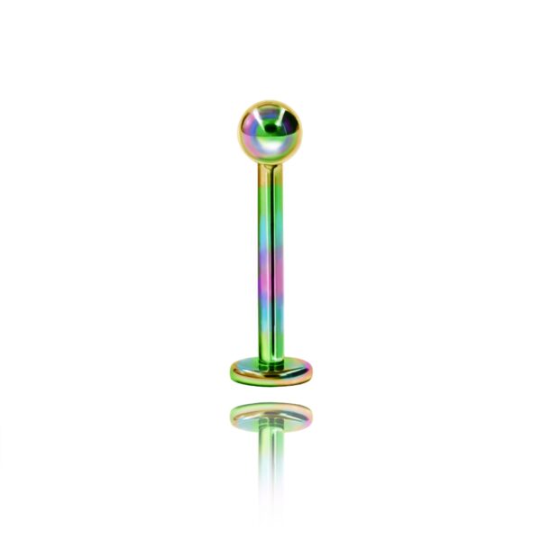 Labret wykonany ze stali chirurgicznej 316L z kulką w kolorze tęczowym.