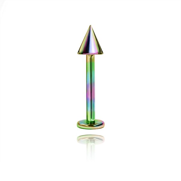 Labret wykonany ze stali chirurgicznej 316L w kolorze tęczowym ze stożkiem.
