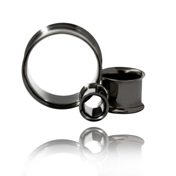 Tunel wykonany ze stali chirurgicznej 316L z odgiętymi ściankami , pokryty  warstwą PVD w kolorze czarnym.
