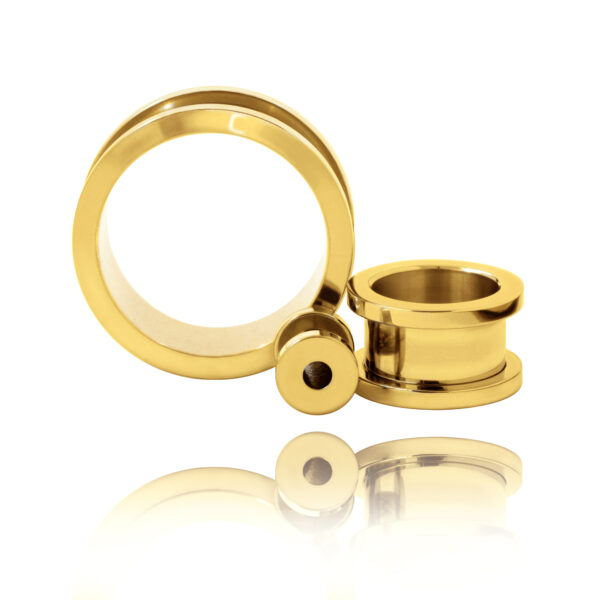 Tunel wykonany ze stali chirurgicznej 316L pokrytej warstwą PVD z odkręcaną ścianką w kolorze złota.
